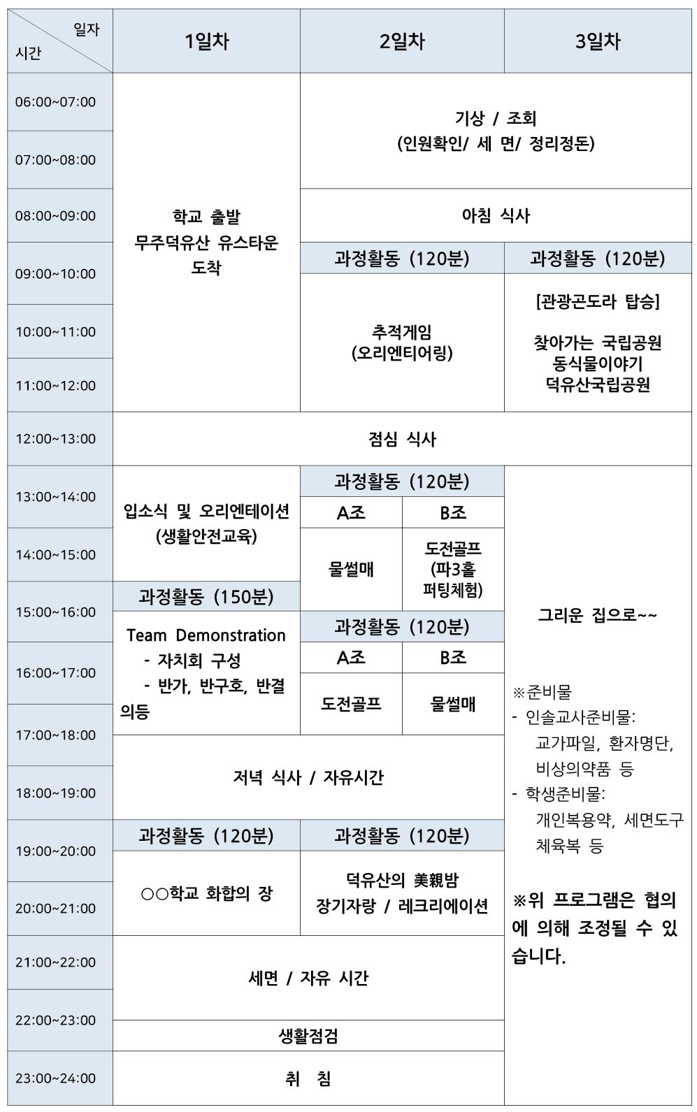 - 2박 3일 프로그램
